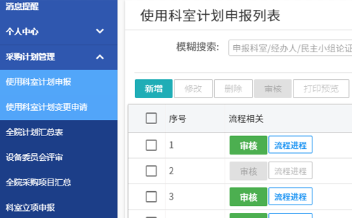 像和智研发的院内设备采购招标系统,目前已实现包含采购计划(年度计划、临时计划、补充计划)管理、设备委员会评审、月度计划管理、科室立项申购、单一来源谈判采购管理、竞争性谈判采购管理、现场谈判采购管理以及招投标管理、投标企业管理、开标、专家评标、采购结果管理等功能模块,并且有严格的审核流程及机制。