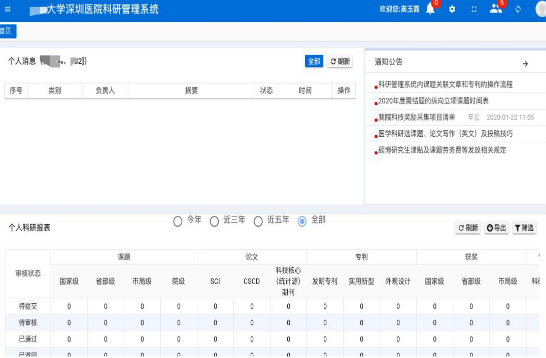 成立科研科题、专利、奖项、著作、科研平台、任职、论文等,成立大数据平台,实时分析科室及医生个人等科技影响力。