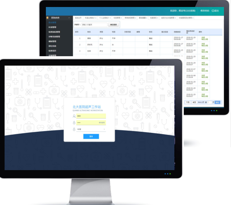 医院建立一套全院科室信息共享,自动登记、分诊叫号、图像采集、语音报告、智能报告编辑、同步相似病例、医生业绩考核等超声工作信息化的管理系统。医院通过系统,可实现从病人挂号登记到医生完成报告的全流程信息化管理,为医院规范超声检查流程,改善科室管理水平、医生快速且精准诊断提供决策依据和强力支持。那么,一款好用的超声系统后台管理都包括哪些。(如果你还更多疑问,请点击>>>在线客服)