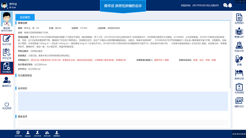 医生可以根据自己的患者及家属意见情况发起会诊,其中包括了病历讨论、科内会诊、科间多学科会诊、全院会诊、远程会诊。发起人可以说明该会诊的理由及目的、确定会诊时间和会诊地点,并邀请不同科室的一至多名专家参加会诊。参加会诊的专家、学者可以发表自己的意见,不同专家和学者意见能为病患者提供更多的治疗方案,不仅仅能减少治疗的时间成本,更能大大提高治疗成功率。同时,讨论交流的过程也提高了各自的蓝颜gtv
