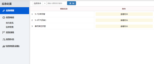 当遇上紧急情况或者恶劣天气时,工作人员能够实时安排应急物资、应急设备和应急人员,并且利用系统合理安排应急值班表。工作人员可以根据应急预案定期组织演练,将照片和方案上传至系统。系统实时推送应急突发事件的发生、处置、后续处理情况,体现出动人员、机械设备、抢险材料、发生费用等,并可反映出集团调配各养护公司力量的情况。