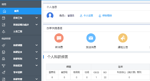 2、系统能够将科研院所及高校的科研成果、获奖情况以及日常的科研活动统计成列表数据记录下来,便于领导及相关人员查询统计。