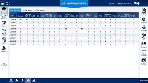 2、我的业绩:界面分为:医生个人情况、病患情况分析、会诊记录查询。